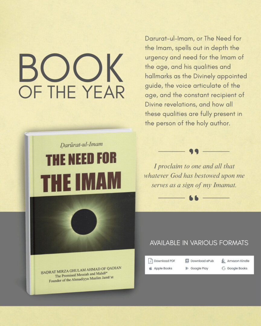 Huzur-e-Anwar (aba) has given instructions that this year The need for the Imam by The Promised Messiah (as) should be studied by all Waqifeen-E-Nau, ages 15 years and above.