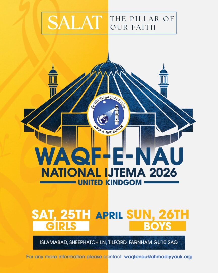 Huzur-e-Anwar (aba) has given instructions that this year The need for the Imam by The Promised Messiah (as) should be studied by all Waqifeen-E-Nau, ages 15 years and above.